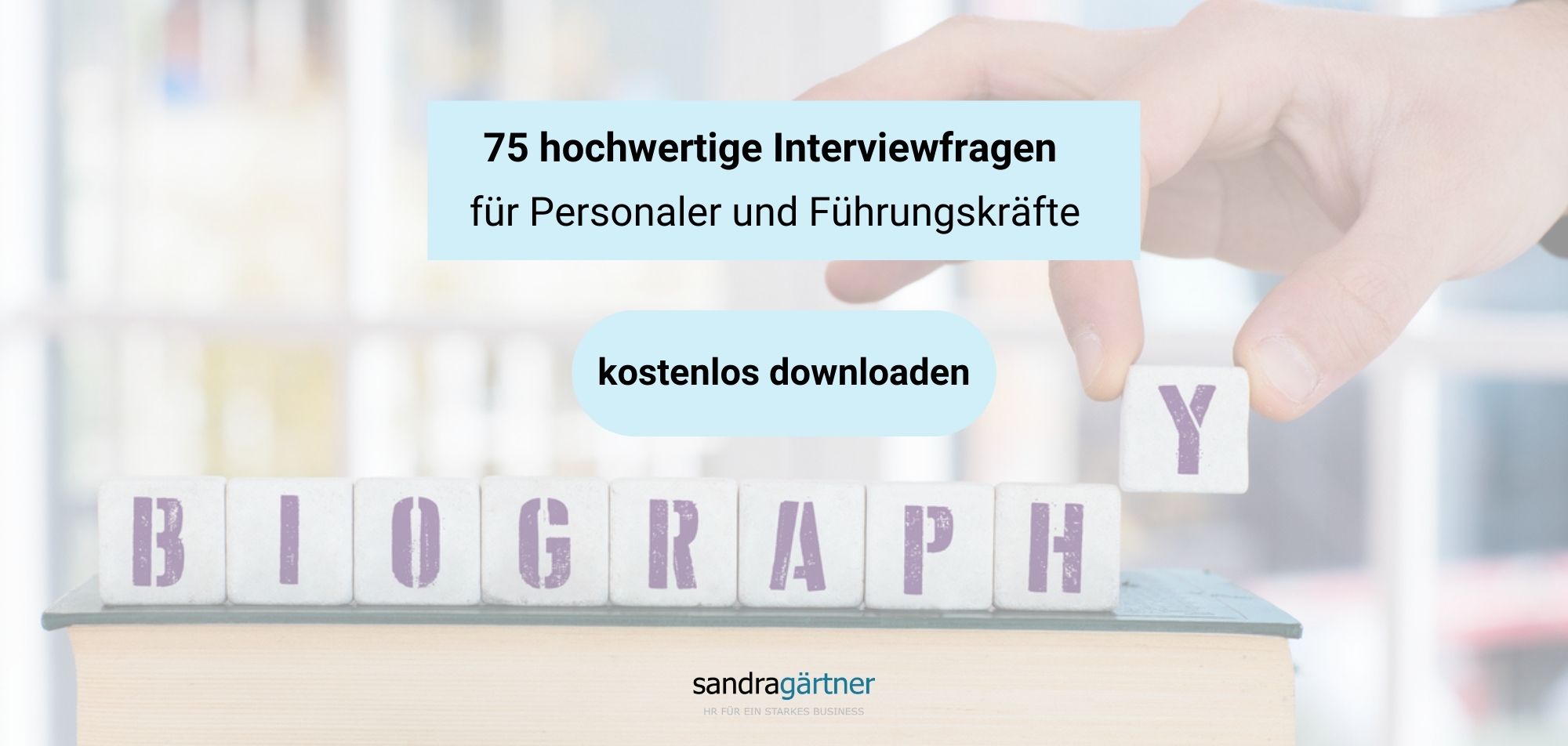 Für Ihren schnellen Einstieg in Bewerbungsgespräche habe ich für Sie 75 hochwertige Interviewfragen für Personaler und Führungskräfte zusammengestellt, die Sie direkt anwenden können. Hier sind auch biographische Fragen enthalten: